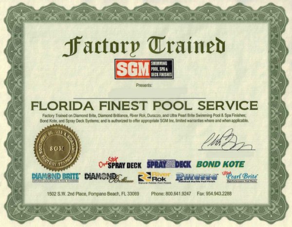 We are factory trainied installers for Diamond Brite, River Rok and Durazzo finishes. We also provide installations for all Florida Stucco installations as well as exclusive installer for Quartzscapes, Stonescapes and Jewelscapes finishes.